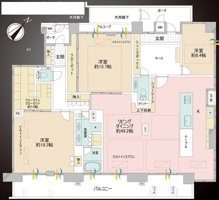 LDK49.2畳 洋室18.3畳 洋室15.7畳 洋室8.4畳